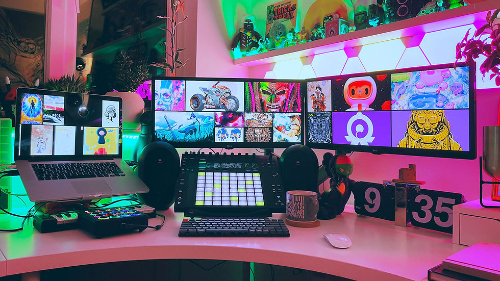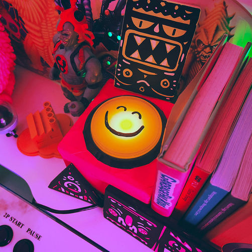 Welcome to my creative space, which I affectionately call ‘The Den’. I love being surrounded by ’stuff’; Toys, trinkets, books, prints and anything else colourful. I prefer a ‘maximalist’ approach to my surroundings, stuffing my eyeballs with as much input as possible. I like screens too. Lots of screens. As many screens as possible please. I love those sweet, sweet pixels.
