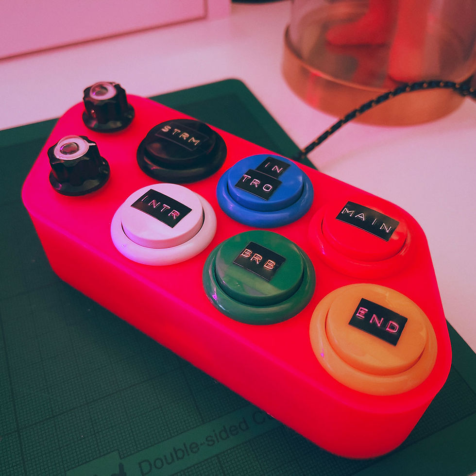 For a bit of vision mixing I use this joyous object - a ‘WOTTO’ MIDI controller. Using MIDI2Key I can convert the button signals into OBS shortcuts!